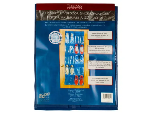 Tuscany 20 Pocket Over Door Shoe Organizer for 10 Pairs |