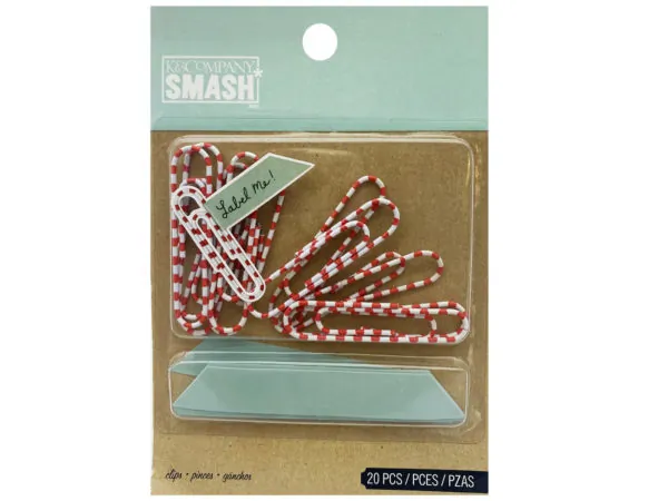 20 Count Red & White Striped Paper Clip Set |