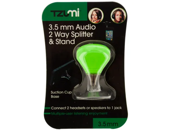 Green 2-Way Audio Splitter with Suction Cup Base |