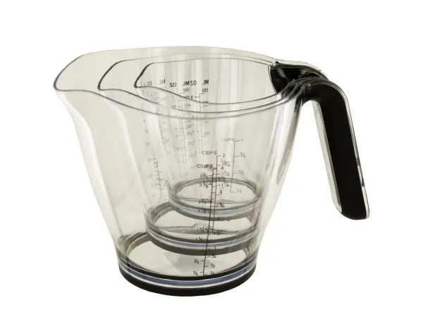 3-Piece Transparent Measuring Cup Set with Rubber Handles |
