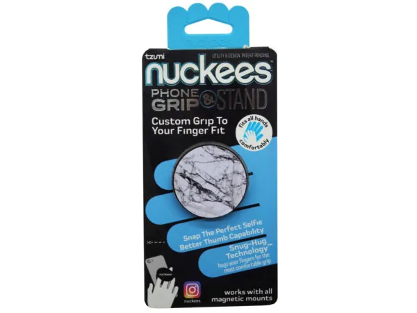 tzumi Nuckee Phone Grip & Stand - White Marble Design |