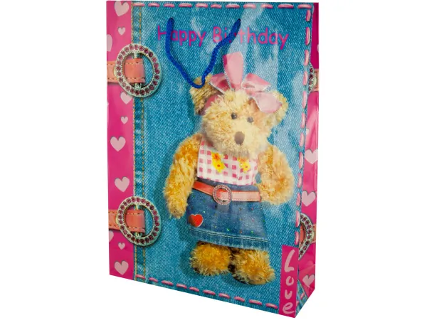 Large Pink Teddy Bear Birthday Gift Bag |