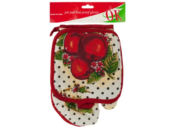 Flower & Fruit Design Oven Mitt and Pot Holder Bundle |