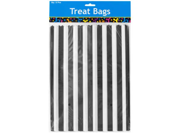Striped Black and White Treat Bags - 12 Pack |