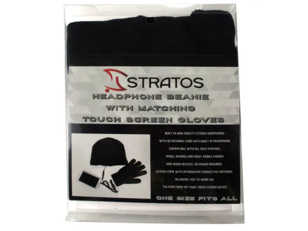 Stylish Black Beanie with Headphones and Touchscreen Gloves |