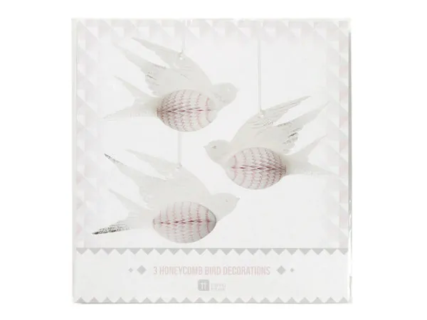 Elegant White and Pink Honeycomb Bird Decor Set |