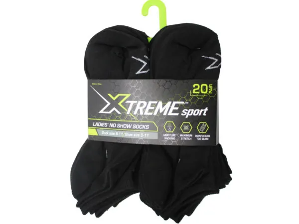Xtreme Sport No Show Socks 20 Pack for Ladies - Black |