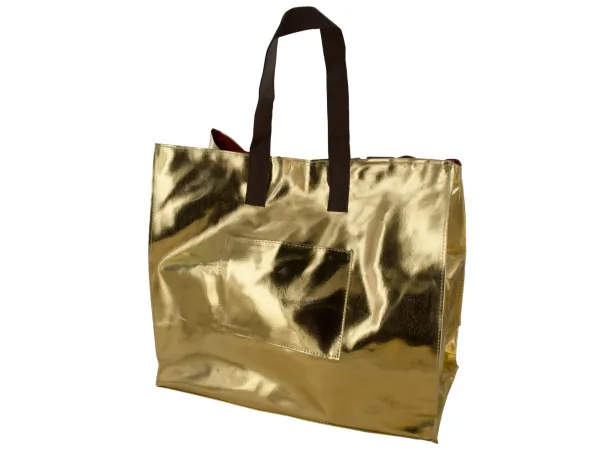 Reversible Gold & Red Tote Bag with Exterior Pockets |