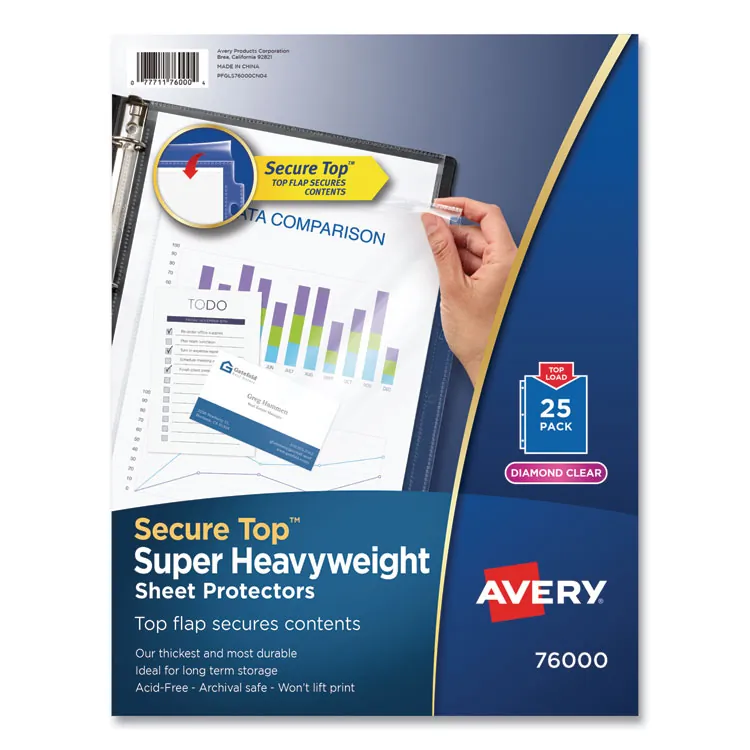 AVE 76000BD Avery Dennison Avery® Secure Top Sheet Protectors - For Letter 8 1/2 x 11 Sheet - 3 x Holes - Ring Binder - Cle... 1 88 $44.07 View 1 Seller