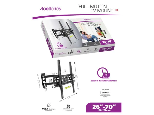GR446 Bulk Buys Acellories Universal Full Motion TV Mount for 26-70 Inch TVs 1 5 $62.69 View 1 Seller