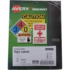 SKILCRAFT Avery Surface Safe Sign Labels - 7 Width x 10 Length - Removable Adhesive - Rectangle - La... |