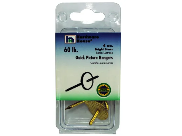 Heavy-Duty Bright Brass Picture Hangers, Set of 4 |