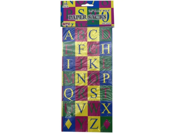 Assorted Numbers & Letters 10-Piece Paper Lunch Bags |