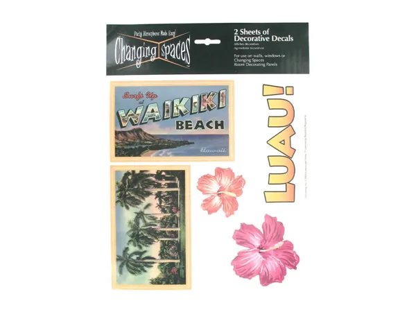 Hawaii Themed Decorative Wall Decals - 2 Sheets with 10 Designs |