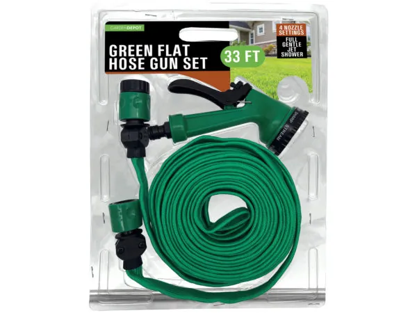 33'' Space-Saving Green Flat Hose with Spray Gun Set |