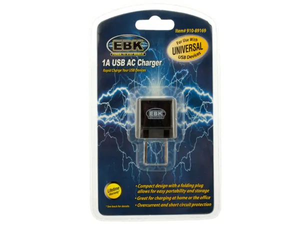 EL832 Bulk Buys Compact 1A USB AC Wall Charger with Folding Plug 1 5 $40.27 View 1 Seller