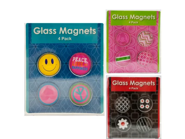 Assorted Designs Glass Magnets - 4-Piece Set |