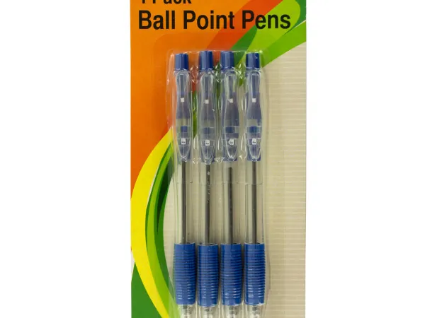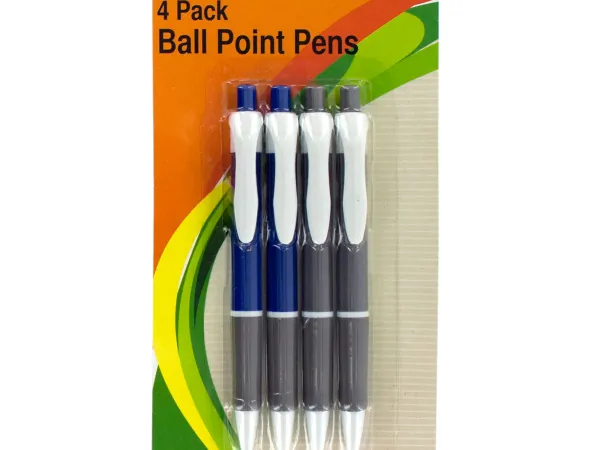 4-Pack Retractable Blue Ballpoint Pens with Grips |