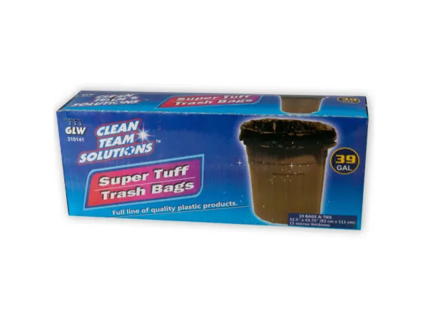 39 Gallon Super Tuff Trash Bags - 10 Pack with Ties |