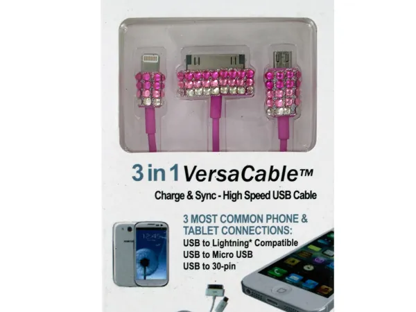 Sparkle Charge & Sync 3-in-1 USB Cable with Rhinestones |