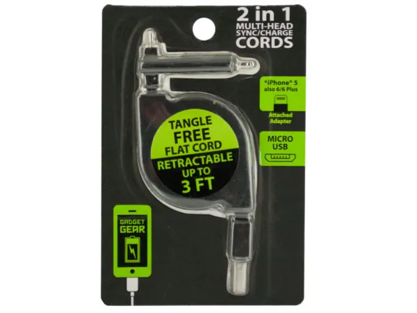 Retractable 2-in-1 Sync/Charge Cable with Multi-Head Connectors |