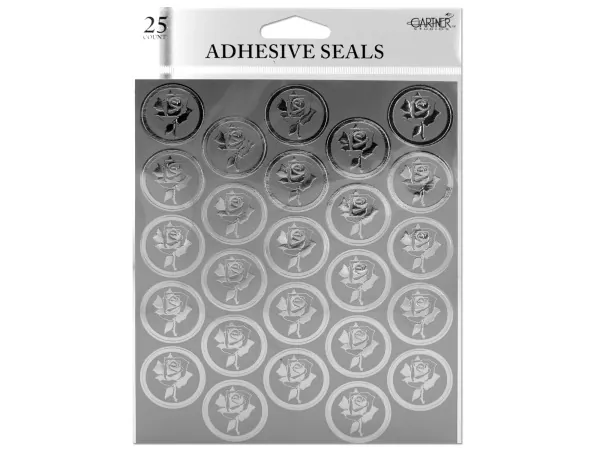 Elegant Silver Rose Adhesive Seals for Invitations |