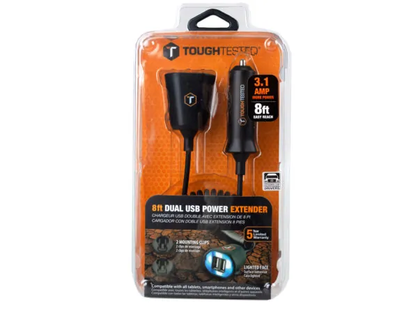 EN271 Bulk Buys Tough Tested Dual USB Car Charger with 8ft Extender 1 5 $43.25 View 1 Seller