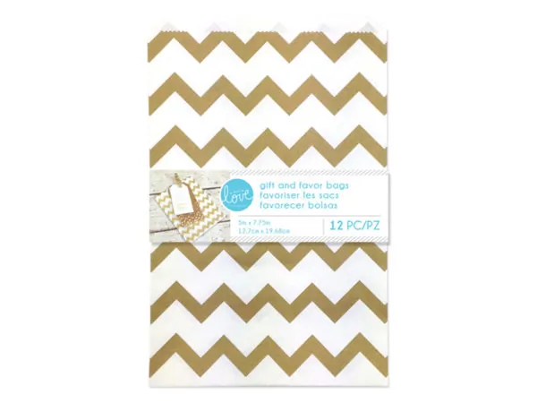 Stylish Gold Chevron Favor Bags - 12 Pack |