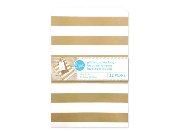 Elegant Gold Striped Gift Bags - 12 Pack |