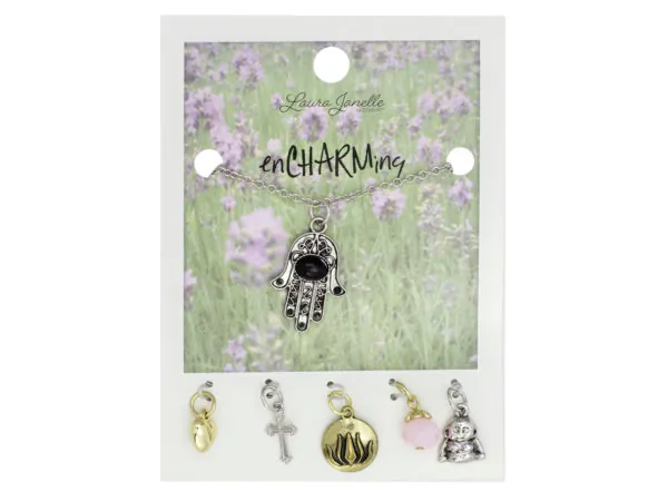 Charming Gold Hamsa Necklace with Interchangeable Charms |