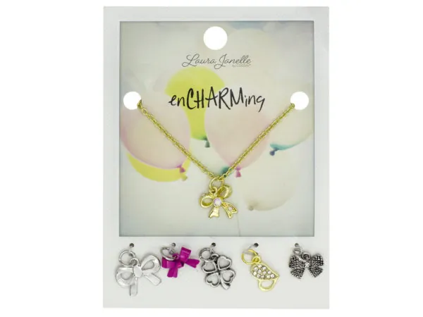 Charming Gold Bow Necklace with Interchangeable Charms |