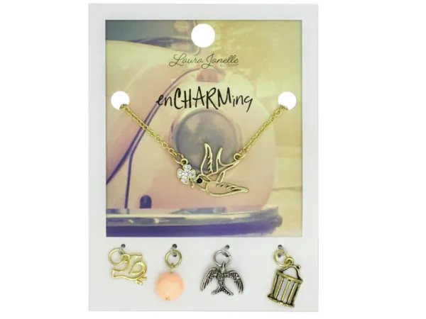 Charming Gold Bird Necklace with Interchangeable Charms |