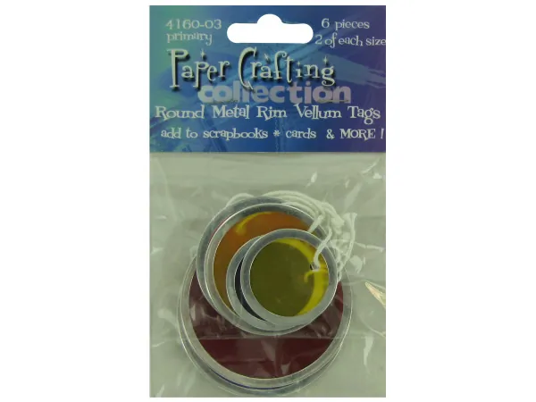 Colorful Round Metal Rim Vellum Tags - 6 Pack |