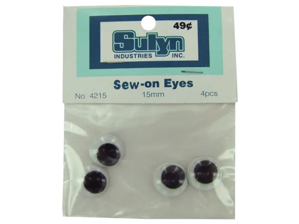 Colorful Sew-On Eyes for Craft Projects - 4 Pack (15mm) |