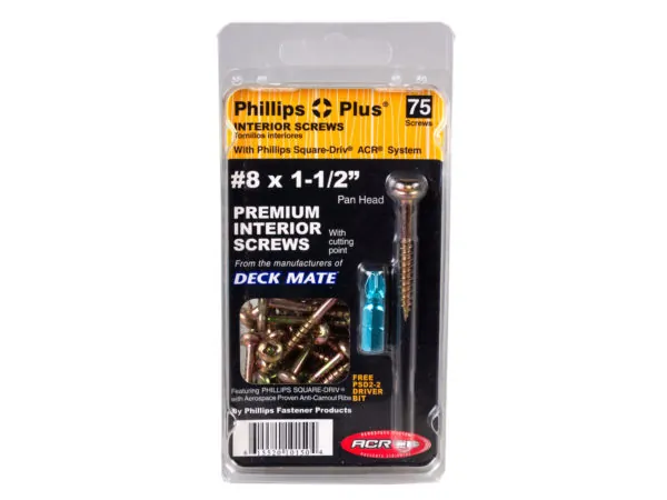 #8 x 1.5 Pan Head Screws with Driver Bit - 75 Pack |