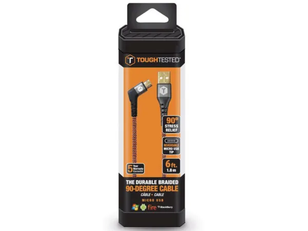 Durable 6ft Braided Micro USB Cable with 90-Degree Connector |