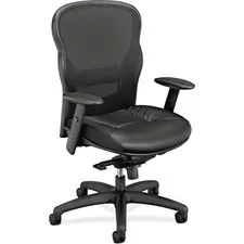 HON Wave Mesh High-Back Task Chair - Black Leather Seat - Black Back - Black Frame - 5-star Base - 1... |