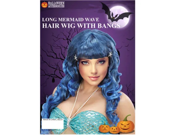 Vibrant Blue Mermaid Wave Wig with Bangs |