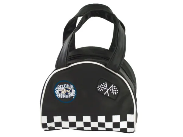 PC097 Bulk Buys Sporty Black Racer Handbag with Embroidered Patches 1 5 $41.14 View 1 Seller