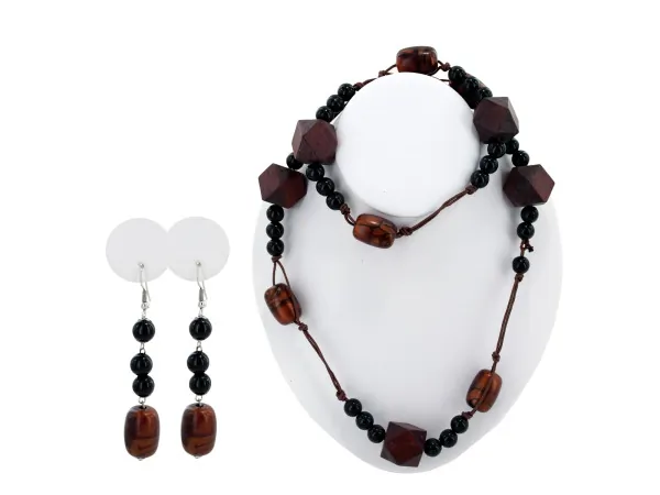 Elegant Brown & Black Beaded Jewelry Set with Earrings |