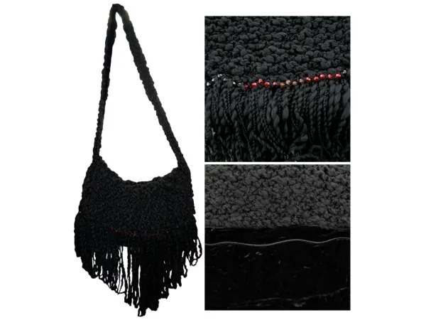Elegant Black Crochet Shoulder Bag with Velvet Lining |