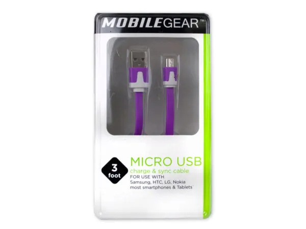 Purple 3' Flat Micro USB Charge & Sync Cable - Durable Design |