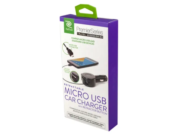 Retractable Micro USB Car Charger with Extra USB Port |