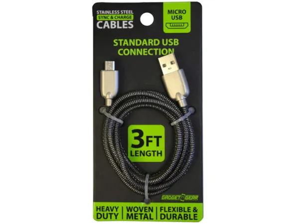 3-Foot Durable Stainless Steel Micro USB Charging Cable |