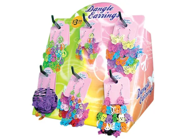 EN985 Bulk Buys Colorful Dangle Metal Earrings Displayed in Countertop Stand 1 5 $41.35 View 1 Seller