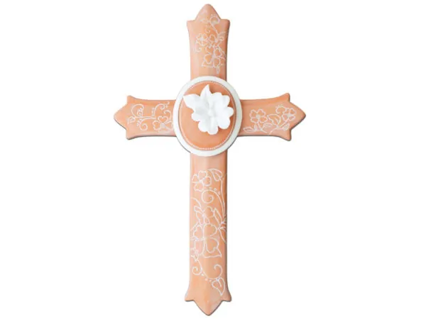 Ceramic Wall Cross with Floral Design and Medallion |