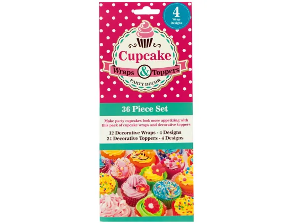 Festive 36-Piece Cupcake Wraps and Toppers Set |