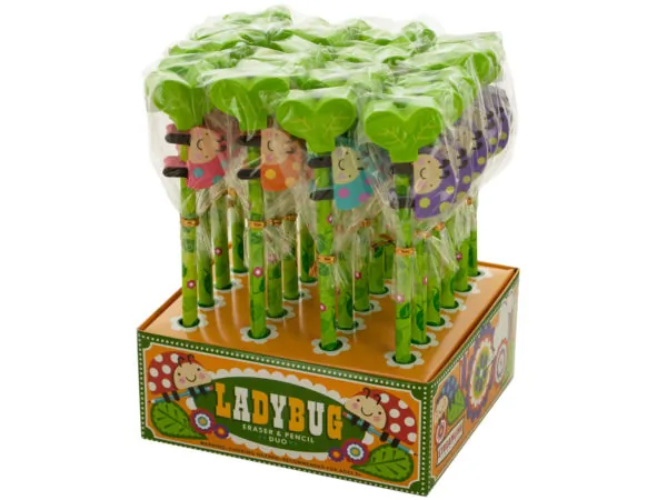 KL564 Bulk Buys Colorful Ladybug Pencil and Eraser Set Display 1 5 $40.10 View 1 Seller