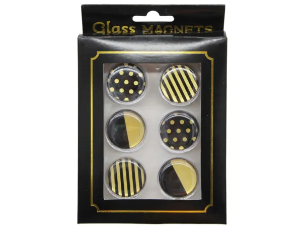 Elegant Black and Gold Glass Magnets - 6 Pack Set |