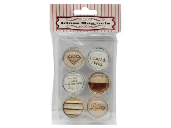 Rose Gold Designer Glass Magnets Set of 6 - Stylish Decor |